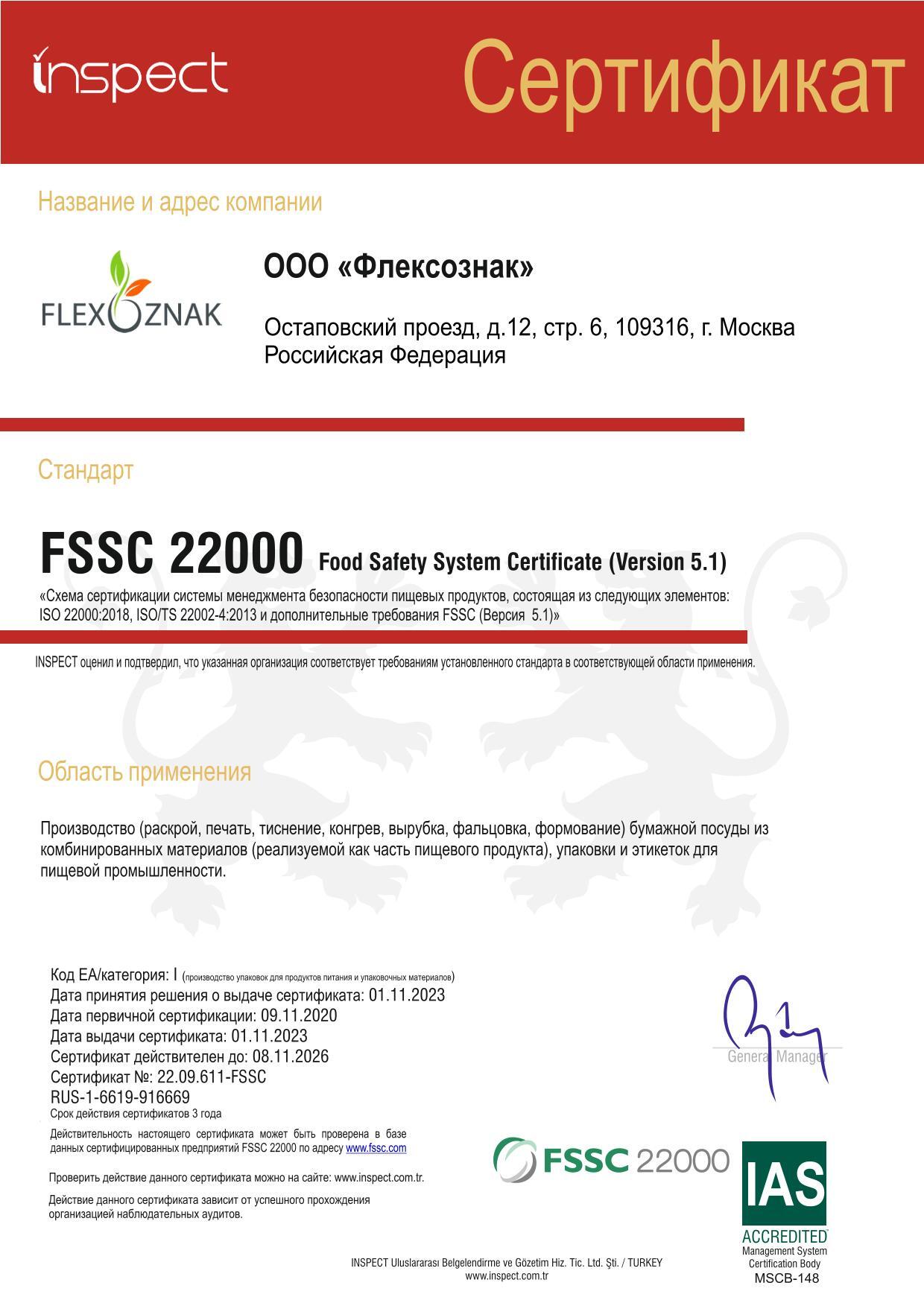 В ноябре 2023г. наша система менеджмента сертифицирована INSPECT Uluslararasi Belgelendirme ve Gözetım Hız. Tıc. Ltd. Ştı. /TURKEY по FSSC 22000 ver.5.1 Схема сертификации пищевой безопасности.